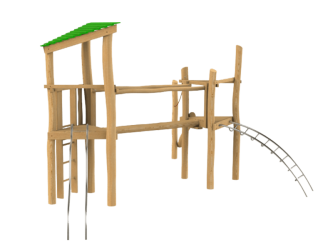 Robinia driehoektoren met glijbaan en hellend klimnet zonder dak