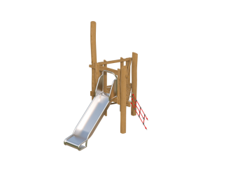 Robinia driehoektoren met glijbaan en hellend klimnet zonder dak