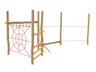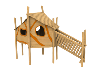 Het robinia speelhuisje geeft aanleiding tot diverse rollenspelen. In de eerste plaats is er het spelletje “vadertje en moedertje”, dat een extra dimensie krijgt door dak en wanden die beschutting en geborgenheid bieden. Het venster geeft contact met de buitenwereld en de deur bakent de grens af naar de privé-sfeer. Deuren en vooral halve deuren sporen aan tot allerlei rollenspelen, zoals de inkoop- en loketactiviteiten in post of station. Jongere kinderen worden in het kleine speelhuis tot familiespelen aangezet. De veranda met twee bankjes bevordert de communicatie en is een trefpunt.