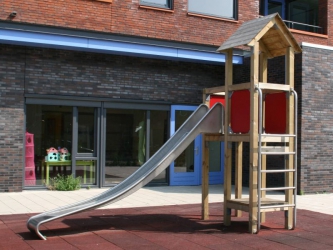 Transparante, stabiele toren die door zijn slanke uiterlijk en zijn ronde vorm onmiddellijk de aandacht trekt. De felle kleuren in combinatie met de avontuurlijke spiraalglijbaan maken van de uitkijktoren een echte blikvanger.