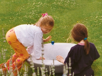 Bij normale glijbanen komt een belangrijke speelfunctie niet aan bod, namelijk het spelen zonder houvast op een glad oppervlak. Eigenlijk verwachten wij dit ook van een glijbaan, want het beklimmen ervan langs de glijplaat is voor kinderen spannender, creatiever en vooral een avontuurlijkere uitdaging. Zoals een zilveren kogel groeit de berg op uit de grond. Zijn kleur wordt bepaald door de omgeving waarin hij zich bevindt en door de zon die erin weerkaatst. De glijberg is een speeltoestel met een glad oppervlak dat ons niet de richting of de volgorde voorschrijft, maar enkel de manier waarop wij met elkaar omgaan. Om zijn top te bereiken is behendigheid vereist of, beter nog, de helpende hand van een ander. Dit leidt dan vanzelf tot het besef dat samenwerken op dit speeltoestel zinvol kan zijn. Alle bergen zijn leverbaar als waterberg.
